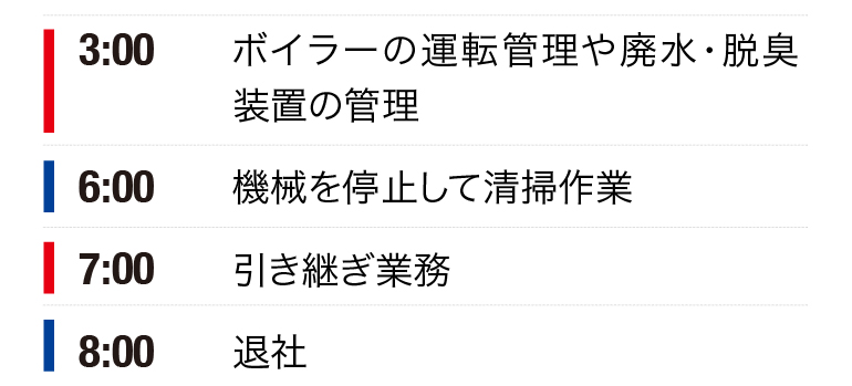 完全日曜定休で平日はシフト制のため、休みの都合がつけやすく、残業もほとんどありません。危険が伴う作業は必ず複数人で行うなど、安全面には細心の注意を払っています。私自身も業界未経験で、21歳の時に入社しました。中途採用は業界未経験者ばかりですが、優しい先輩方に教えてもらいながら一人前になれました。元気とやる気、そして夜勤があるので「昼間に寝られる事」が必須条件ですが(笑)、未経験でも全く問題ありません。今後は常に自分をアップデートしつつ、多方面で会社や循環型社会に貢献していくことが目標です。責任を持って仕事を教えますので、特に同世代となる20代、30代の仲間がもっと増えてくれることを楽しみに待っています。